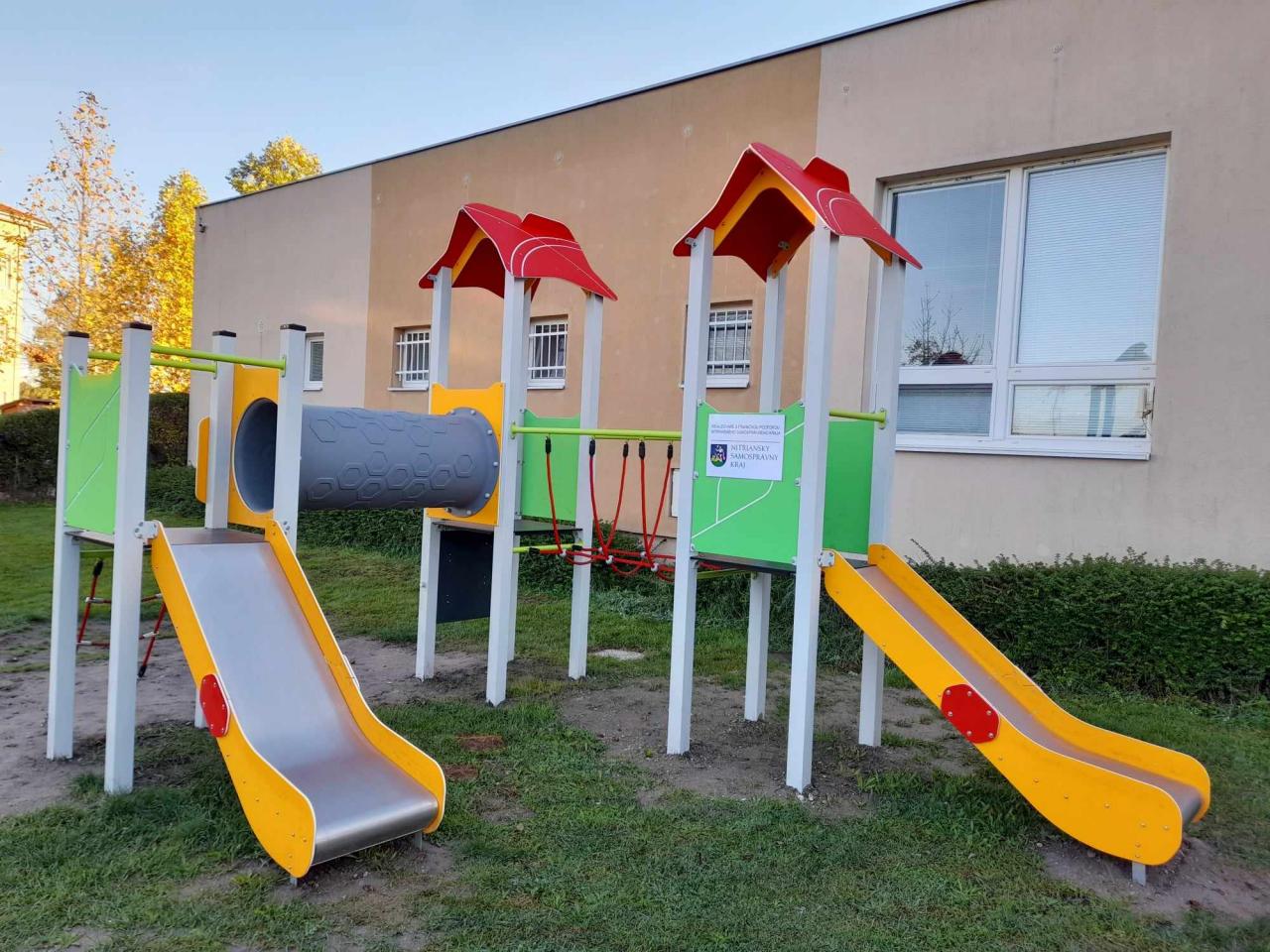 Materská škola Zlatná na Ostrove - Veľká lezecká zostava " Realizované s finančnou podporou Nitrianskeho samosprávneho kraja".